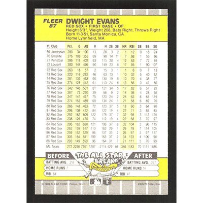 This is a 1989 Fleer Dwight Evans baseball card. The card is #87 and pictures show condition.