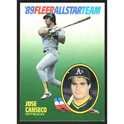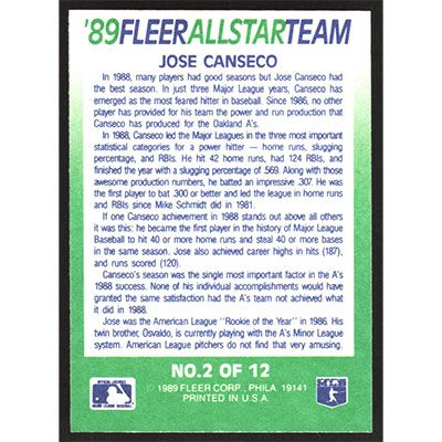 This is a 1989 Fleer All-Stars Jose Canseco baseball card. The card is #2 and pictures show condition.