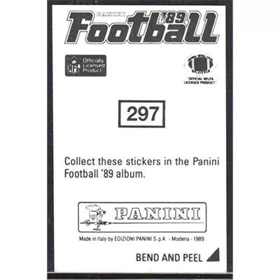 This is a 1989 Panini Stickers Bill Brooks football card. The card is #297 and pictures show condition.