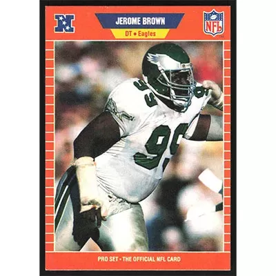 This is a 1989 Pro Set Jerome Brown football card. The card is #312 and pictures show condition.