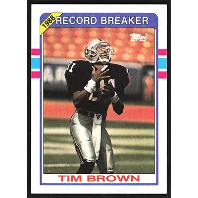 This is a 1989 Topps Tim Brown Record Breaker football card. The card is #2 and pictures show condition.