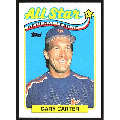 This is a 1989 Topps Gary Carter All-Star baseball card. The card is #393 and pictures show condition.