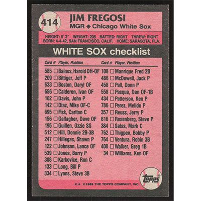 This is a 1989 Topps Jim Fregosi baseball card. The card is #414 and pictures show condition.