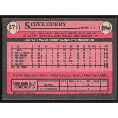 This is a 1989 Topps Steve Curry baseball card. The card is #471 and pictures show condition.