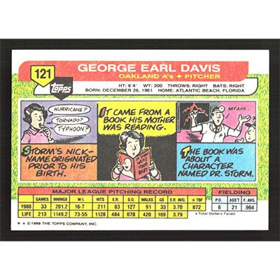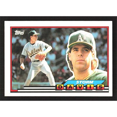 This is a 1989 Topps Big Storm Davis baseball card. The card is #121 and pictures show condition.