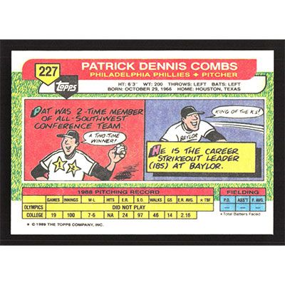 This is a 1989 Topps Big Pat Combs baseball card. The card is #227 and pictures show condition.
