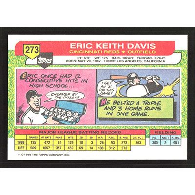This is a 1989 Topps Big Eric Davis baseball card. The card is #273 and pictures show condition.