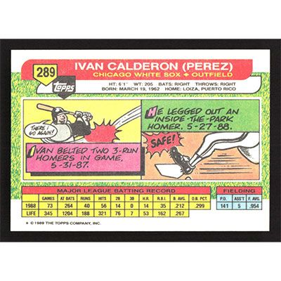 This is a 1989 Topps Big Ivan Calderon baseball card. The card is #289 and pictures show condition.
