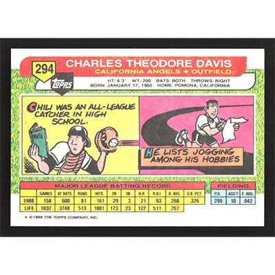This is a 1989 Topps Big Chili Davis baseball card. The card is #294 and pictures show condition.