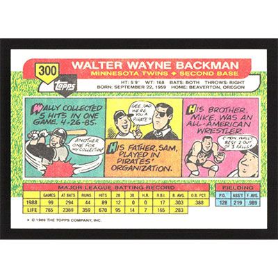 This is a 1989 Topps Big Wally Backman baseball card. The card is #300 and pictures show condition.