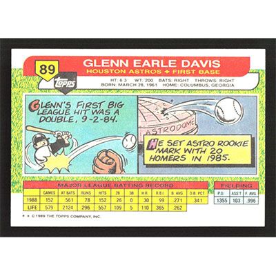 This is a 1989 Topps Big Glenn Davis baseball card. The card is #89 and pictures show condition.