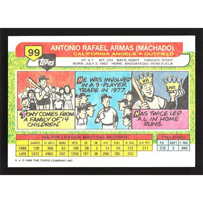 This is a 1989 Topps Big Tony Armas baseball card. The card is #99 and pictures show condition.
