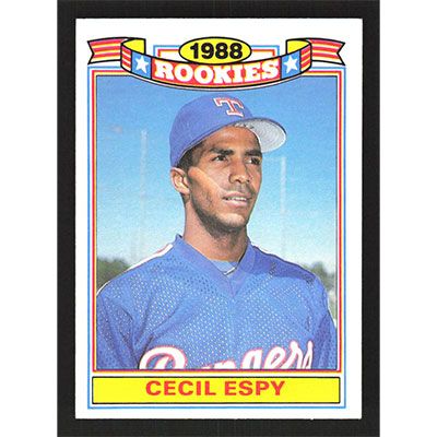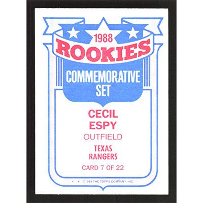 This is a 1989 Topps Rookies Cecil Espy baseball card. The card is #7 and pictures show condition.