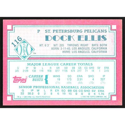 This is a 1989 Topps Senior League Dock Ellis baseball card. The card is #116 and pictures show condition.