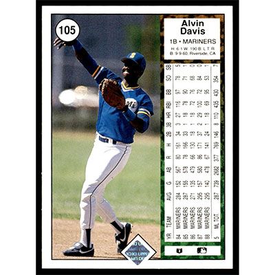 This is a 1989 Upper Deck Alvin Davis baseball card. The card is #105 and pictures show condition.