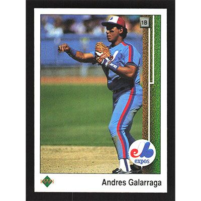 This is a 1989 Upper Deck Andres Galarraga baseball card. The card is #115 and pictures show condition.