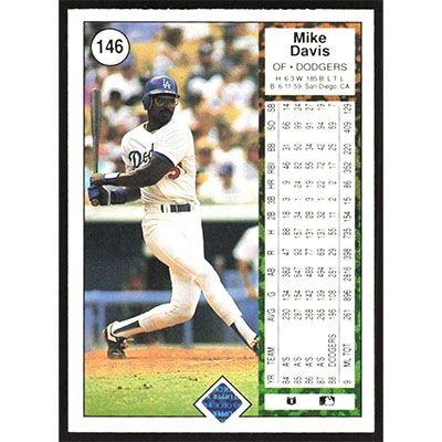 This is a 1989 Upper Deck Mike Davis baseball card. The card is #146 and pictures show condition.