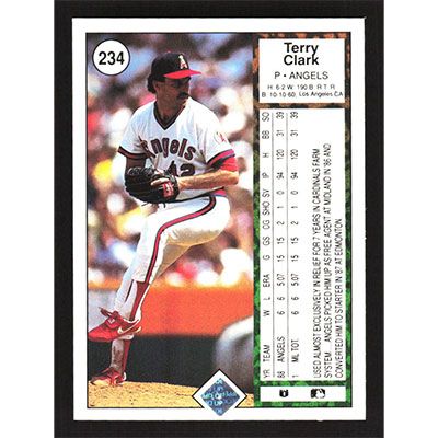 This is a 1989 Upper Deck Terry Clark baseball card. The card is #234 and pictures show condition.