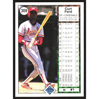 This is a 1989 Upper Deck Curt Ford baseball card. The card is #309 and pictures show condition.