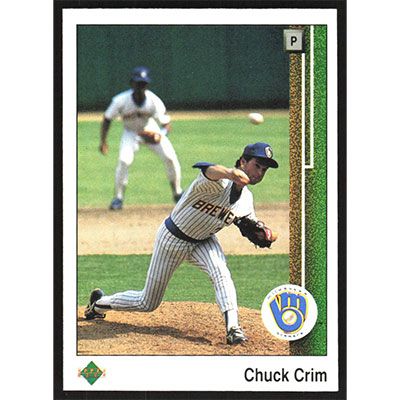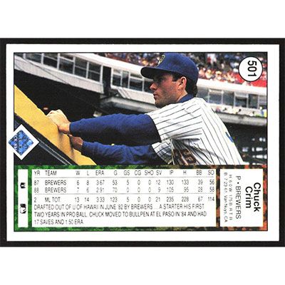 This is a 1989 Upper Deck Chuck Crim baseball card. The card is #501 and pictures show condition.
