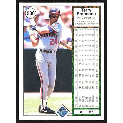 This is a 1989 Upper Deck Terry Francona baseball card. The card is #536 and pictures show condition.