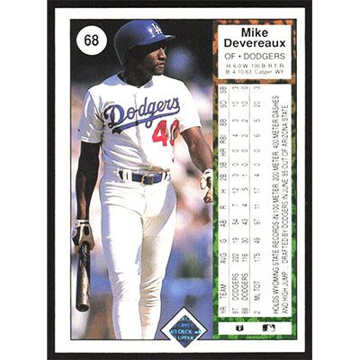 This is a 1989 Upper Deck Mike Devereaux baseball card. The card is #68 and pictures show condition.