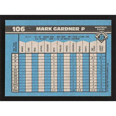 This is a 1990 Bowman Mark Gardner baseball card. The card is #106 and pictures show condition.