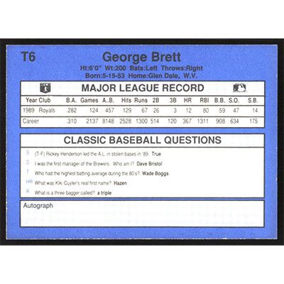 This is a 1990 Classic Update George Brett baseball card. The card is #T6 and pictures show condition.