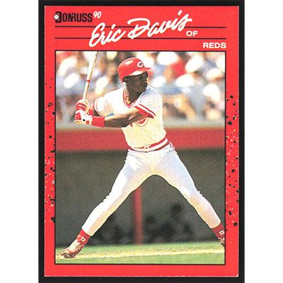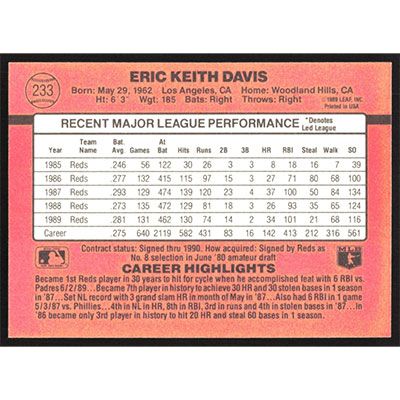 This is a 1990 Donruss Eric Davis baseball card. The card is #233 and pictures show condition.