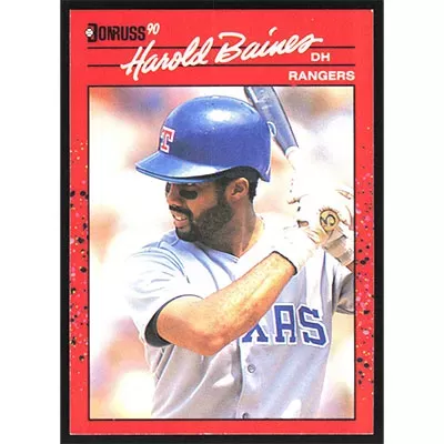 This is a 1990 Donruss Harold Baines baseball card. The card is #402 and pictures show condition.