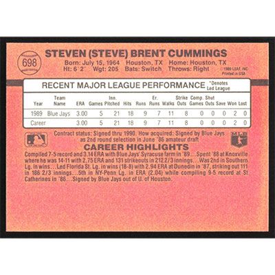 This is a 1990 Donruss Steve Cummings baseball card. The card is #698 and pictures show condition.