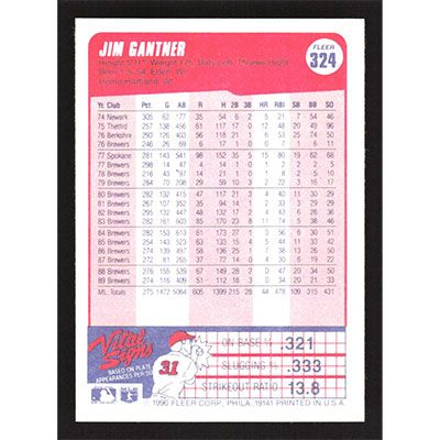 This is a 1990 Fleer Jim Gantner baseball card. The card is #324 and pictures show condition.