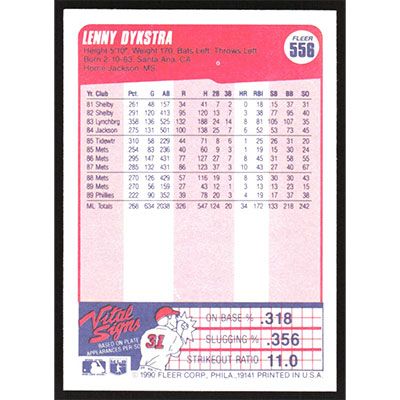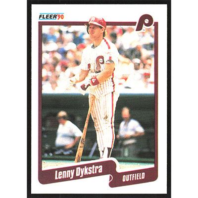 This is a 1990 Fleer Lenny Dykstra baseball card. The card is #556 and pictures show condition.