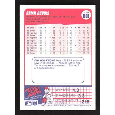 This is a 1990 Fleer Brian DuBois baseball card. The card is #601 and pictures show condition.