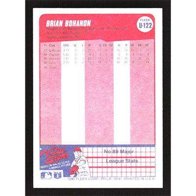 This is a 1990 Fleer Update Brian Bohanon baseball card. The card is #U-122 and pictures show condition.