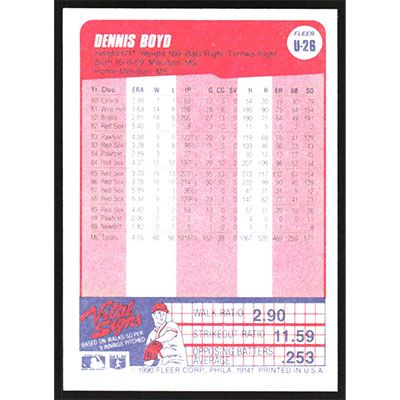 This is a 1990 Fleer Update Dennis Boyd baseball card. The card is #U-26 and pictures show condition.