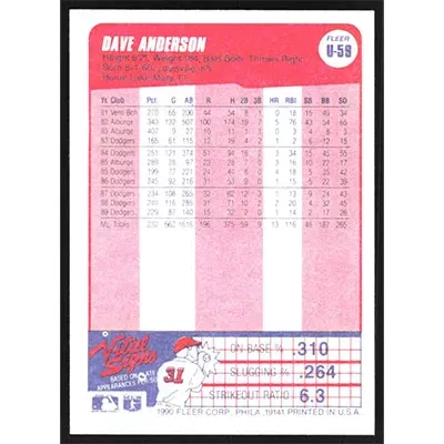 This is a 1990 Fleer Update Dave Anderson baseball card. The card is #U-59 and pictures show condition.