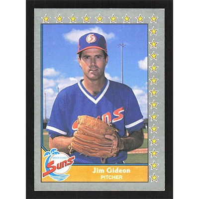 This is a 1990 Pacific Senior League Jim Gideon baseball card. The card is #81 and pictures show condition.