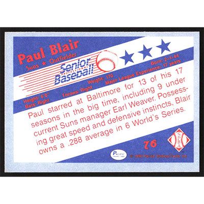 This is a 1990 Pacific Senior League Glossy Paul Blair baseball card. The card is #76 and pictures show condition.