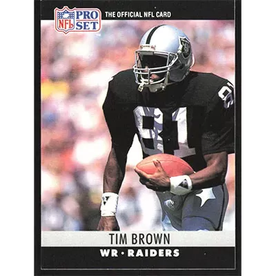 This is a 1990 Pro Set Tim Brown football card. The card is #150 and pictures show condition.