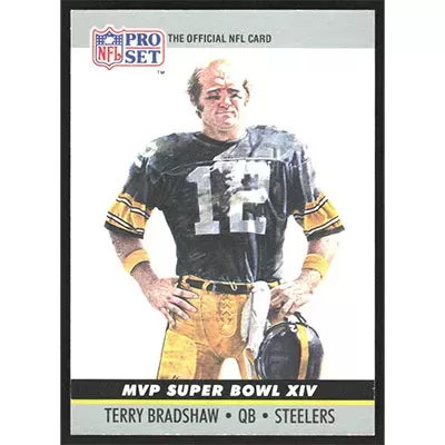 This is a 1990 Pro Set Super Bowl MVPs Terry Bradshaw football card. The card is #14 and pictures show condition.