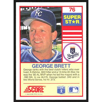 This is a 1990 Score 100 Superstars George Brett baseball card. The card is #76 and pictures show condition.