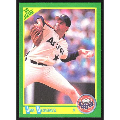 This is a 1990 Score Jim Deshaies baseball card. The card is #154 and pictures show condition.