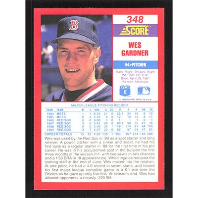 This is a 1990 Score Wes Gardner baseball card. The card is #348 and pictures show condition.