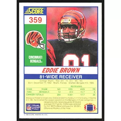 This is a 1990 Score Eddie Brown football card. The card is #359 and pictures show condition.