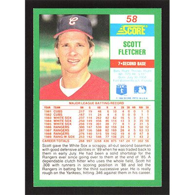 This is a 1990 Score Scott Fletcher baseball card. The card is #58 and pictures show condition.