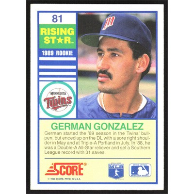 This is a 1990 Score Rising Stars German Gonzalez baseball card. The card is #81 and pictures show condition.