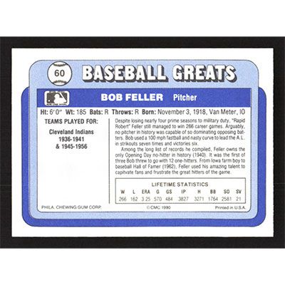 This is a 1990 Swell Baseball Greats Bob Feller baseball card. The card is #60 and pictures show condition.
