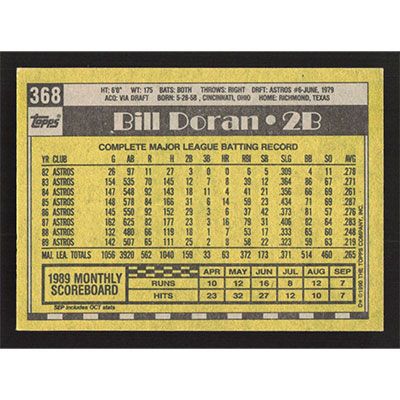 This is a 1990 Topps Bill Doran baseball card. The card is #368 and pictures show condition.