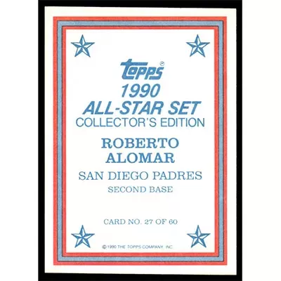 This is a 1990 Topps Glossy Send-Ins Roberto Alomar baseball card. The card is #27 and pictures show condition.